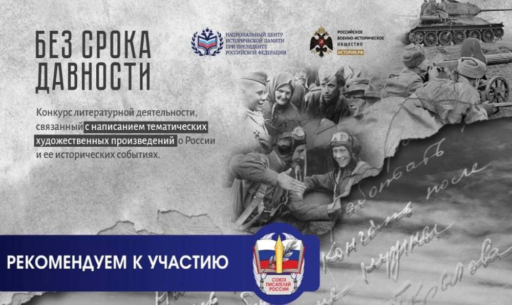 Союз писателей России совместно с Национальным центром исторической памяти при Президенте РФ и Российским военно-историческим обществом объявляет старт литературного конкурса «Без срока давности».