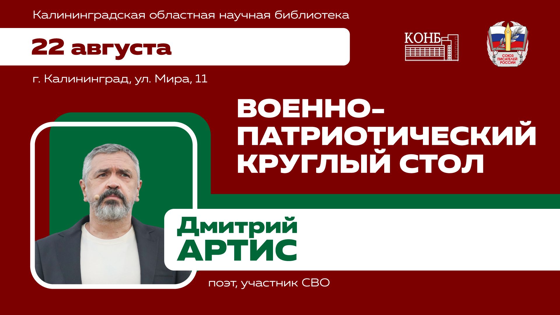 В Калининграде состоится военно-патриотический круглый стол с Дмитрием Артисом