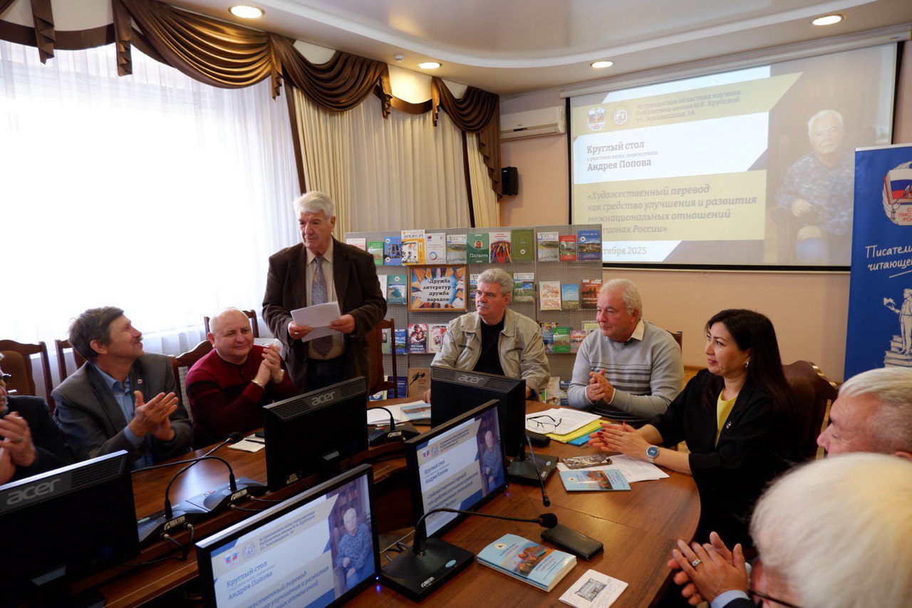 В астраханской областной научной библиотеке имени Н. К. Крупской состоялся круглый стол с участием поэта, переводчика, члена СПР, лауреата Национальной премии «Слово» и всероссийской премии «Гипертекст» Андрея Попова — «Художественный перевод как средство улучшения и развития межнациональных отношений в регионах России».