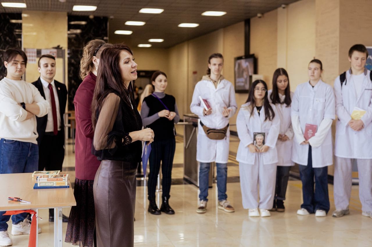 После открытия стенда Виктория Татур, детская писательница и главный специалист по юношеским мероприятиям проектного офиса Союза писателей России, провела для студентов мастер-класс по медленному чтению. В кабинете университета слушатели погружались в глубоководный мир литературы, учились открывать новые смыслы, вдумываться в текст, находить образы, ощущать их фактуру и наслаждаться художественным повествованием.