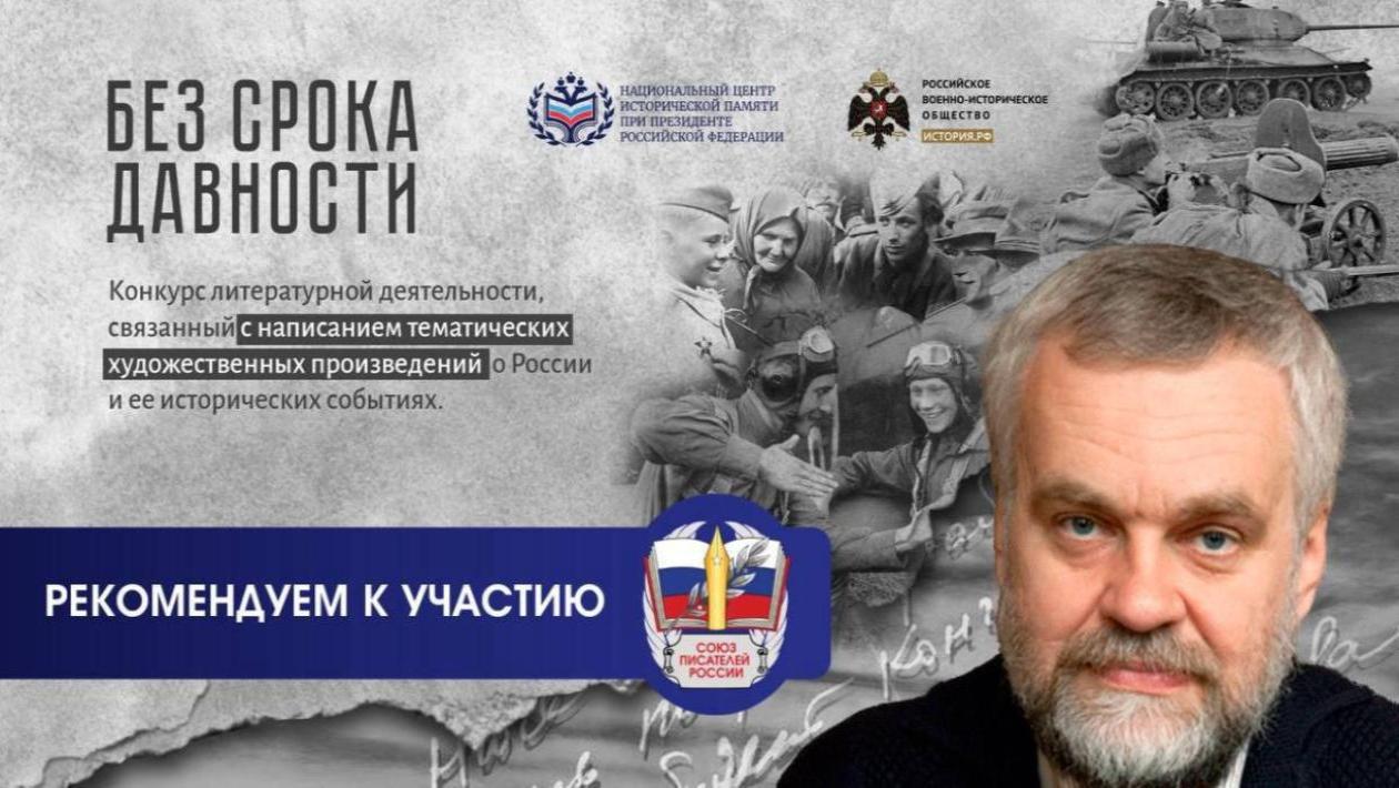 Именно с этой целью создан всероссийский конкурс «Без срока давности», организованный Союзом писателей России, Национальным центром исторической памяти при Президенте РФ и Российским военно-историческим обществом.