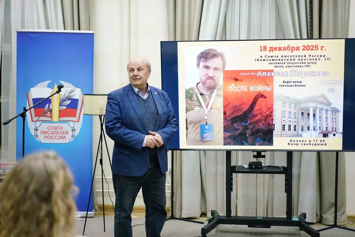 В Союзе писателей России прошёл творческий вечер поэта-фронтовика, прозаика, публициста, участника СВО Алексея Шорохова. На мероприятии автор представил свою книгу «После войны», в которую вошли военные повести, рассказы и пьеса об СВО.