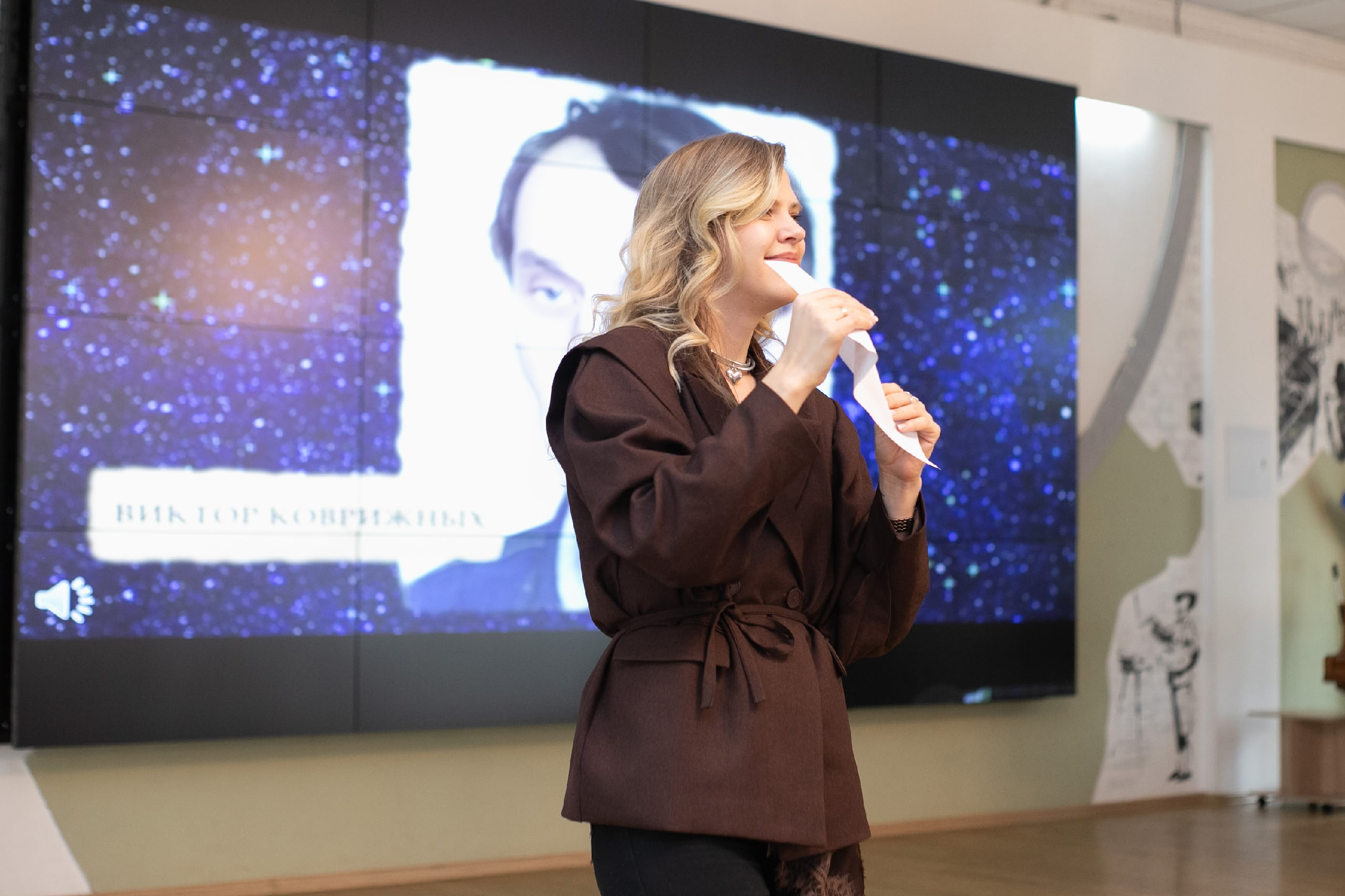 Кульминацией событий стала уникальная литературно-музыкальная композиция в исполнении Яны Ореховой и Оксаны Роковой. Произведения кузбасских авторов прозвучали в формате иммерсивной постановки, где стиралась граница между сценой и залом. Школьники оказались внутри единого художественного пространства, став полноценными соучастниками творческого процесса, что позволило глубже прочувствовать силу и актуальность литературного слова.