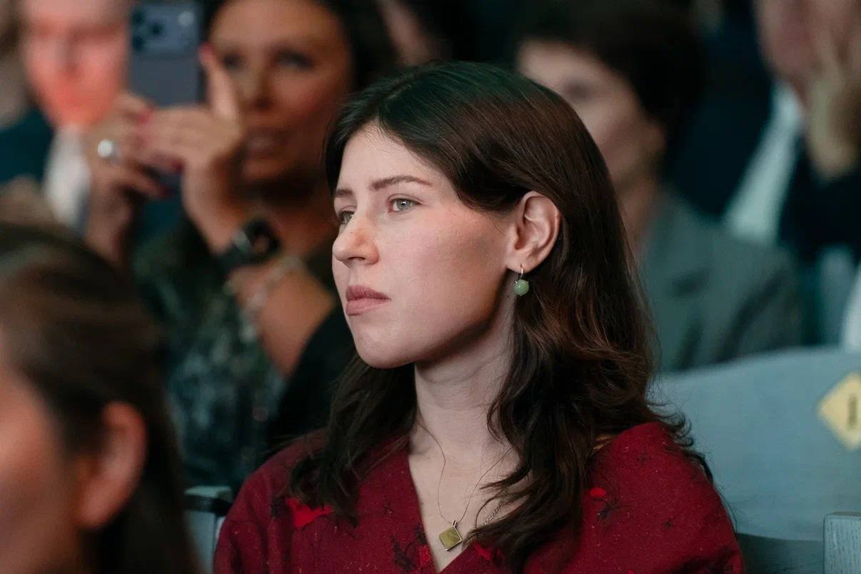 — Мария Ворошилова с рукописью «Садовая – Сенная – Спасская». Родилась в 2002 году в Томске, с детства живёт в Санкт-Петербурге. Окончила магистратуру СПбГУ по программе «Литературное творчество» (2025). Рассказ «Сонечка» опубликован в журнале «Нева» (2025). Рекомендована к вступлению в Союз писателей России по итогам школы «Химки».