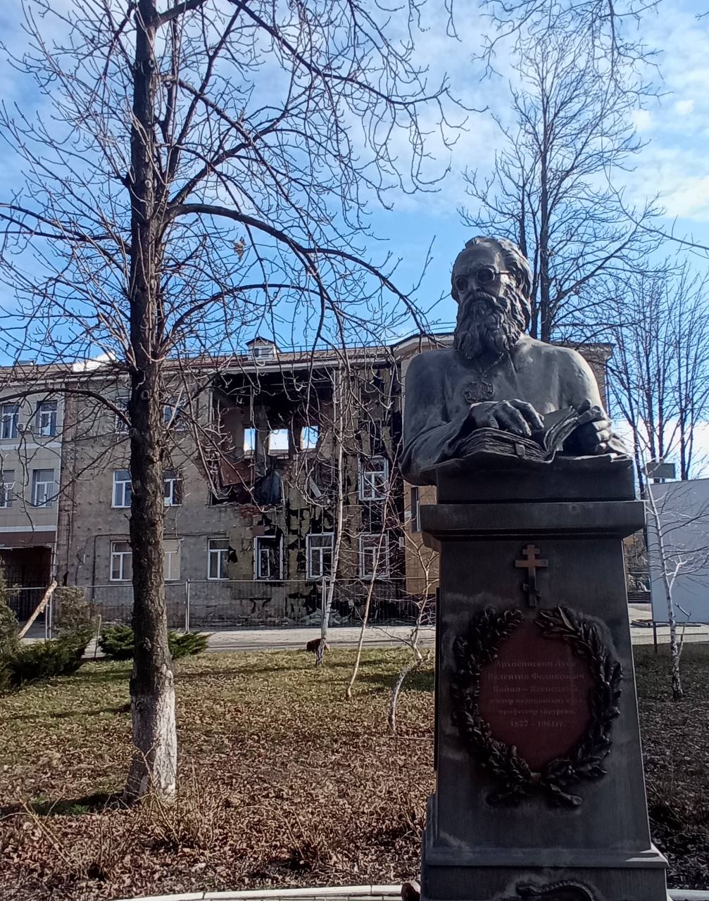 При этом памятник Архиепископу Луке (в миру Валентину Феликсовичу Войно-Ясенецкому), покровителю медиков — не пострадал. Хотя вокруг и рядом несколько раз воронки образовывались.