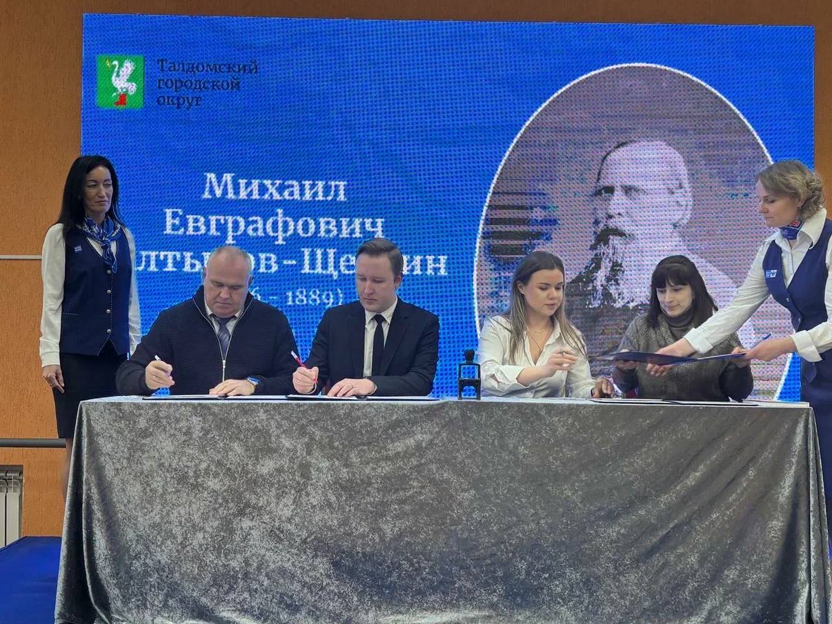 Союз писателей России привёз в дар жителям Талдома выпущенные совместно с АО «Марка» знаки почтовой индексации в честь М.Е. Салтыкова-Щедрина — конверты первого дня, спецгашение которых прошло в торжественной обстановке в Центральном Дворце культуры.