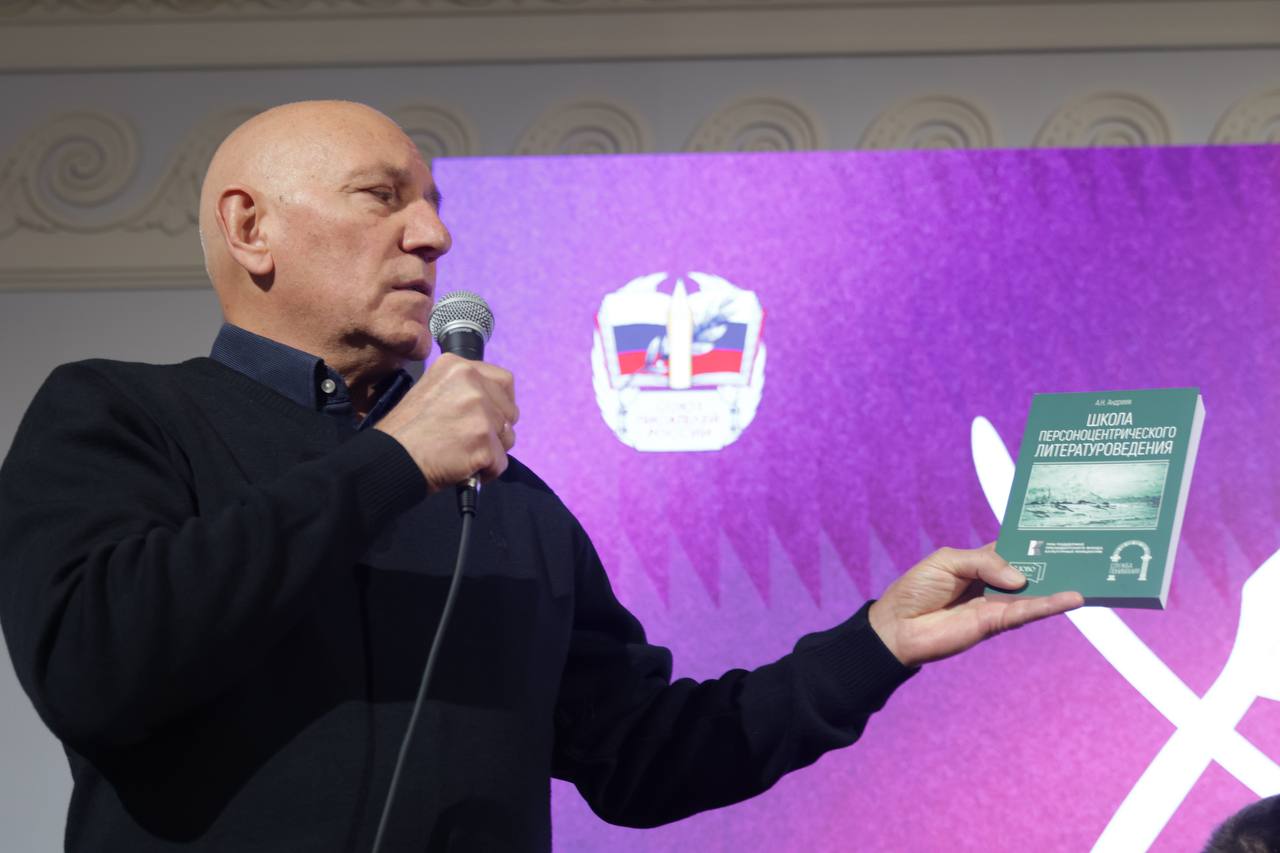 Продолжил «круглый стол» профессор Анатолий Николаевич Андреев, рассказавший о том, что такое «Большой стиль» и почему в XIX веке русские писатели сделали литературный прорыв, который заметил весь мир. Также были представлены книги, которые вышли по итогам двух конференций «Большой стиль», состоявшихся в 2024 и в 2025 годах. Особое внимание было обращено на серию «Служба понимания» и вышедшие в ней книги «Донецкая филологическая школа» (М.М. Гиршман, В.В. Федоров, А.А. Кораблев) и «Школа персоноцентристского литературоведения» (А.Н. Андреев).
