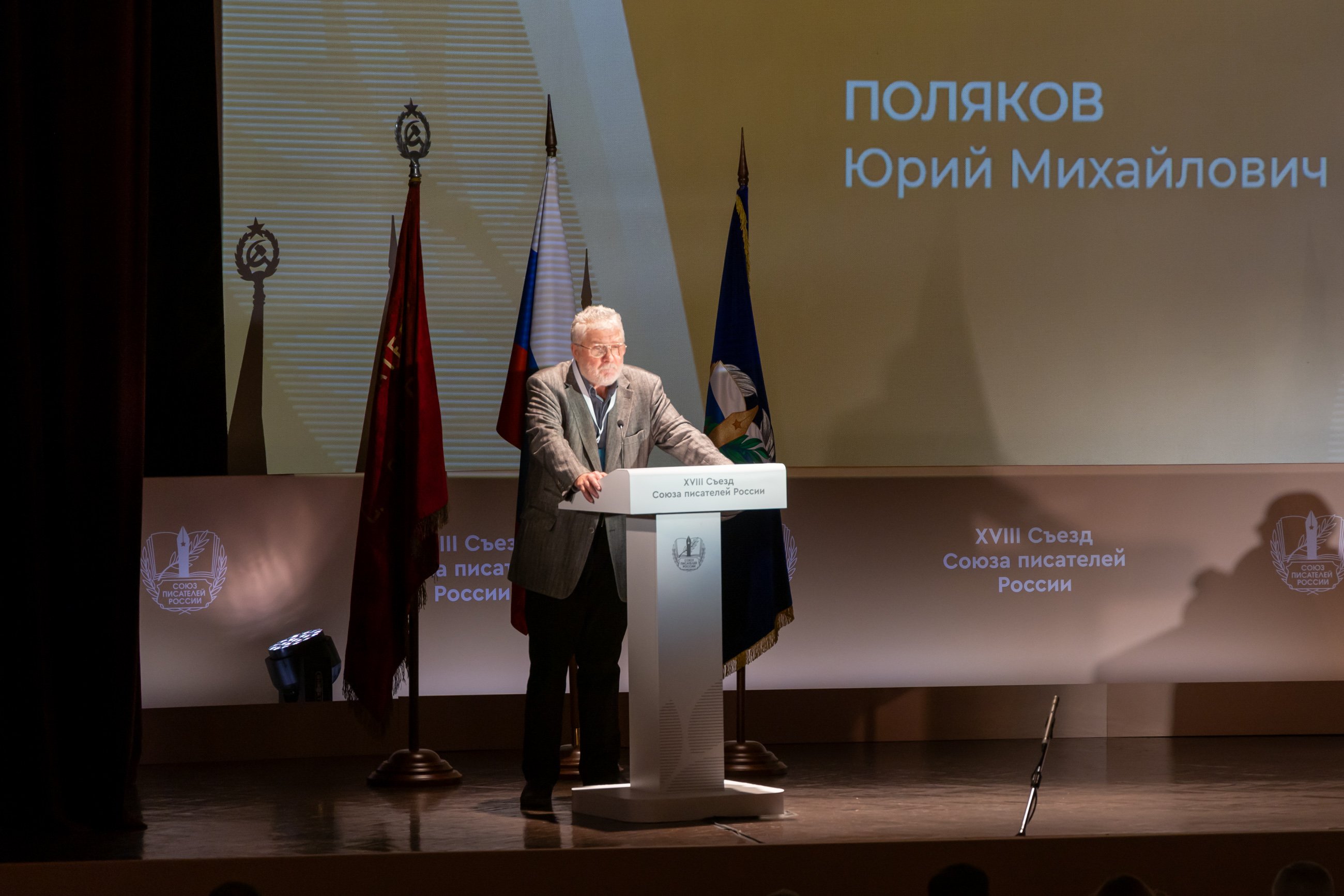 «Друзья, впервые за 34 года мы вновь поднимаем флаг Союза писателей СССР как символ преемственности литературных традиций, преемственности поколений», — сказал Николай Иванов, ответственный секретарь Правления СПР.