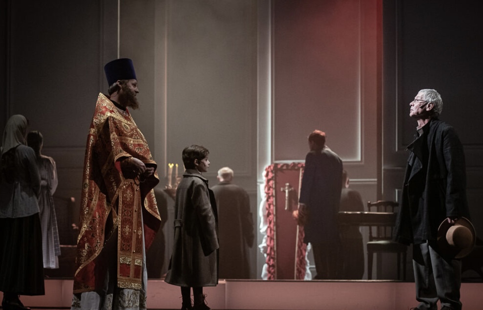 Спектакль длится почти 3 часа. Сцена густо заселена, но главный персонаж на ней – сам автор, Иван Шмелев. Собственно, их двое – взрослый писатель, комментирующий происходящее очень издалека (уверенная работа Александра Девятьярова), и маленький мальчик Ваня, который участвует в действии (Максимилиан Кутузов). Перед нами проходит действительно целый год в большом, небедном купеческом доме, где есть строгий, но любимый отец (запоминающаяся роль Евгения Редько), и огромное количество работников, слуг, приживал, тот самый хор, в котором, однако, хорошо различимы голоса-соло. Это прежде всего фактический воспитатель мальчика мудрый столяр Горкин (Алексей Блохин). А ещё - буйный, но преданный управляющий Василь Василич (Тарас Епифанцев). Или бесконечно добрая, взявшая на себя роль сиделки Анна (Анна Тараторкина)… Повторю, именно в органическом слиянии и одновременно разделении всей массы и отдельных персонажей – удача спектакля. Это же касается и оформления спектакля – есть в нем и общий лад, и отдельные яркие акценты (художник Нана Абдрашитова).