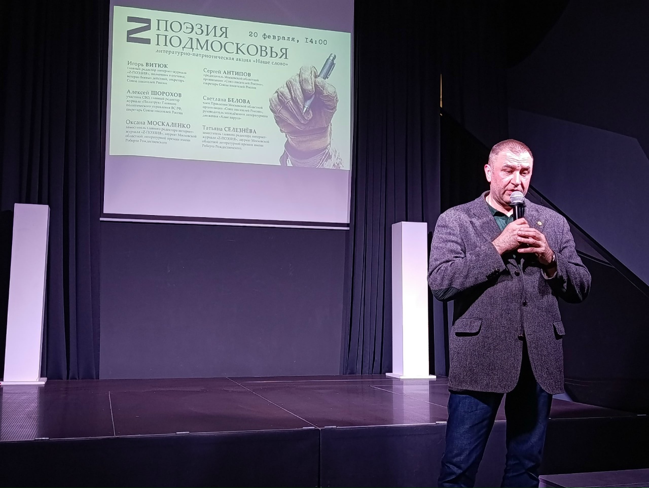 Поэтический концерт, приуроченный к четвёртой годовщине начала СВО и Дню защитника Отечества, прошёл 20 февраля в Московской губернской универсальной библиотеке в подмосковном Королёве в рамках литературно-патриотической акции «Наше слово».
