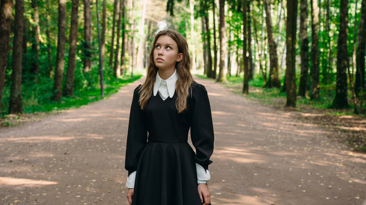 А история такая: героиня (в исполнении Анны Пересильд, дочери, понятно, Юлии Пересильд и режиссера Алексея Учителя; стала популярной в роли Айгуль из «Слова пацана») проваливает ОГЭ. Сердясь на весь этот мир, она чудесным образом (а именно, скатившись с горки на детской площадке в парке) перемещается в мир параллельный. Параллели тут во всём: Милош Бикович это и её отец, и Шляпник. Ирина Горбачева – и мать, и Червонная Королева. И так далее. (Персонажей, кажется иногда, помещено в ленту с большим запасом, причем им одновременно и тесно, и нечего делать…) Теперь Алисе надо пройти своего рода квест, чтобы вернуться обратно, повзрослев и примирившись с реальностью. Испытания путаные. Логика прослеживается с трудом. Но снято да, эффектно. Картинка «вылизана».